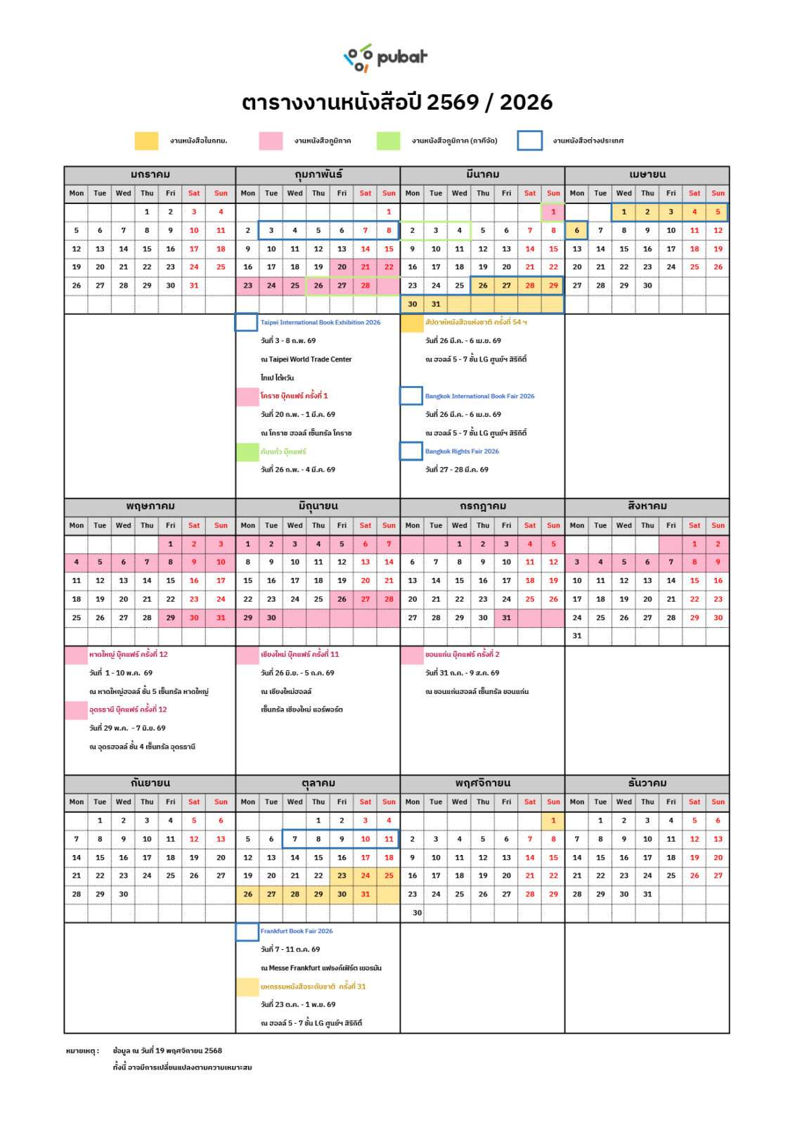 ตารางงานหนังสือ 2569 ครบทุกงาน