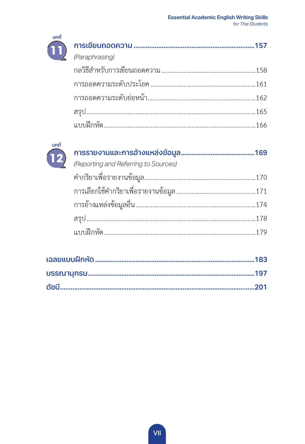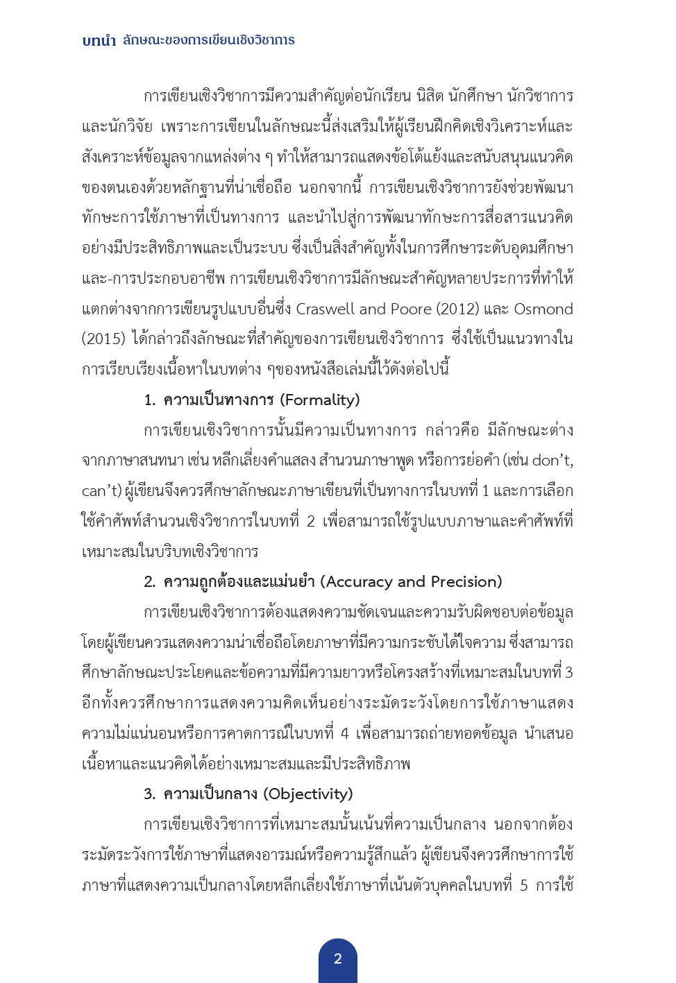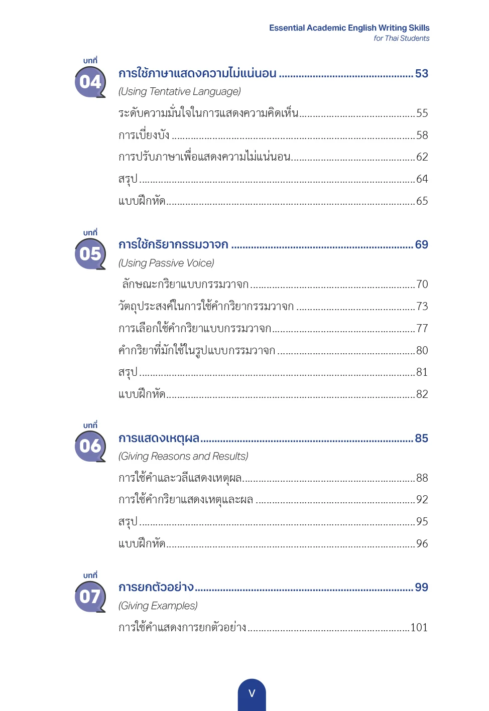 แม้ว่าทักษะการเขียนภาษาอังกฤษเชิงวิชาการจะเป็นทักษะที่ยากสำหรับนิสิต นักศึกษาที่เรียนภาษาอังกฤษเป็นภาษาต่างประเทศแต่ไม่ยากเกินความสามารถหากผู้เรียนได้ศึกษาและฝึกฝนลักษณะการใช้รูปแบบและภาษาเขียนเชิงวิชาการจากหนังสือเล่มนี้ โดยผู้แต่งได้รวบรวมเทคนิคต่าง ๆ ที่สำคัญสำหรับการเขียนภาษาอังกฤษเชิงวิชาการ ตลอดจนการใช้คำศัพท์และวลีที่จำเป็น การใช้โครงสร้างประโยค และรูปแบบภาษาที่เหมาะสมสำหรับการพัฒนาทักษะการเขียนของนิสิต นักศึกษา โดยมีคำอธิบายประกอบเป็นภาษาไทย และมีแบบฝึกท้ายบทพร้อมเฉลยให้สามารถศึกษาได้ด้วยตนเอง หากต้องการพัฒนาทักษะการเขียนภาษาอังกฤษเชิงวิชาการ ควรมีหนังสือเล่มนี้ไว้เป็นคู่มือ